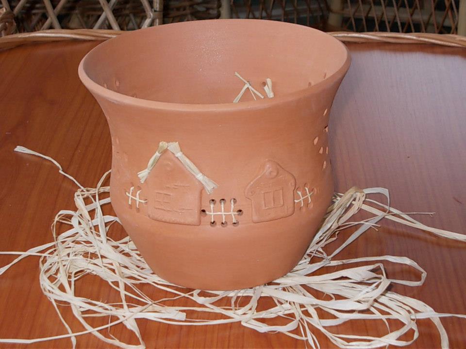 Ukrasna saksija od terakote sa raznovrsnim motivima