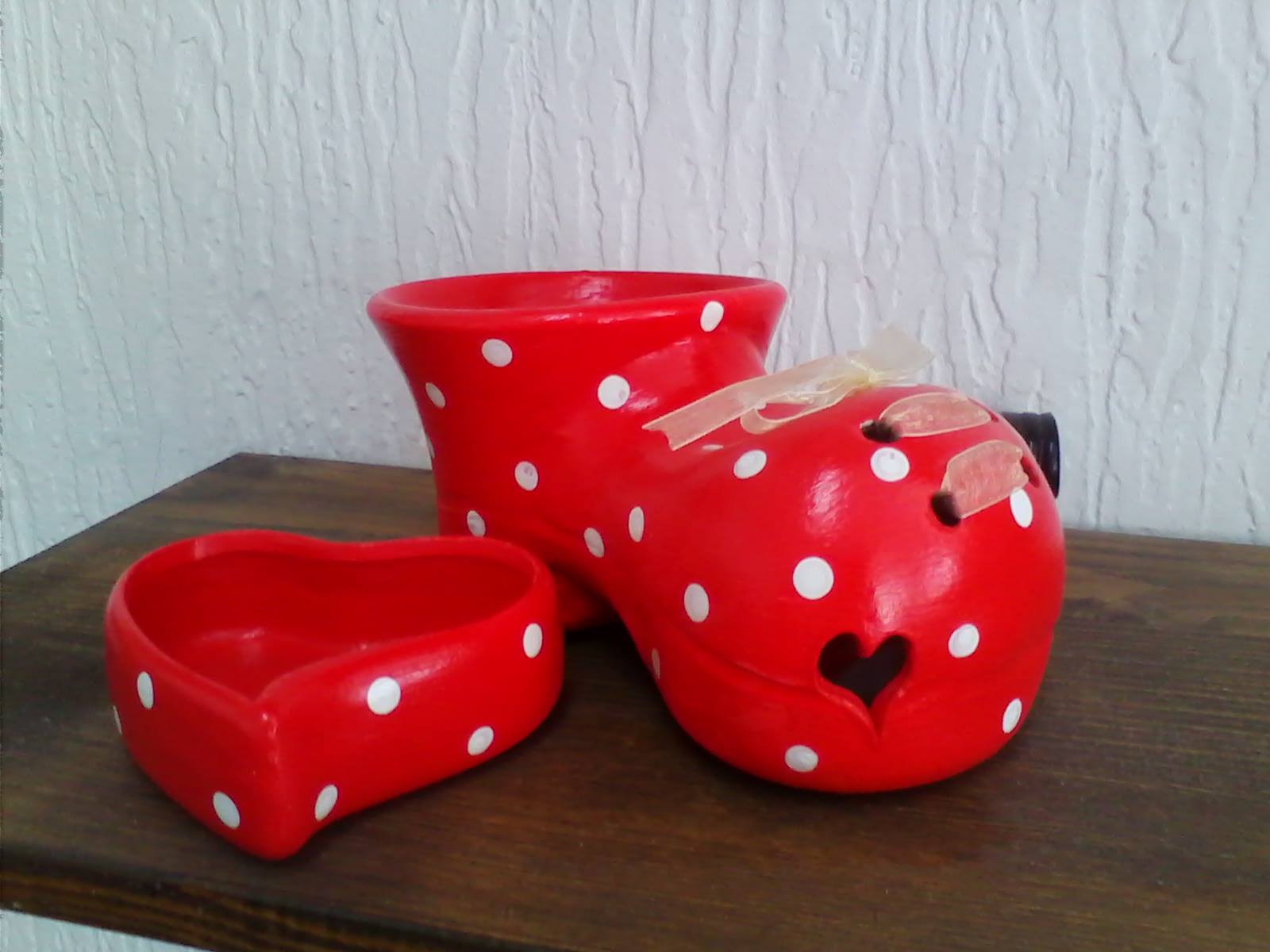 Ukrasna kutija od terakote za bombone u obliku srca i cipelica za cvece.