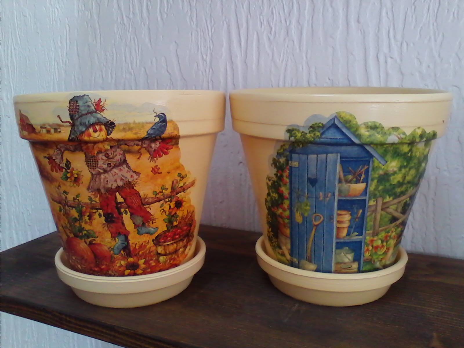 Ukrasne saksije od terakote sa razlicitim motivima precnika 16,5 cm.